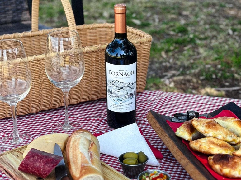 Disfrutá de una experiencia gastronómica al aire libre. Una canasta especialmente preparada para compartir sabores regionales entre viñedos y olivos.